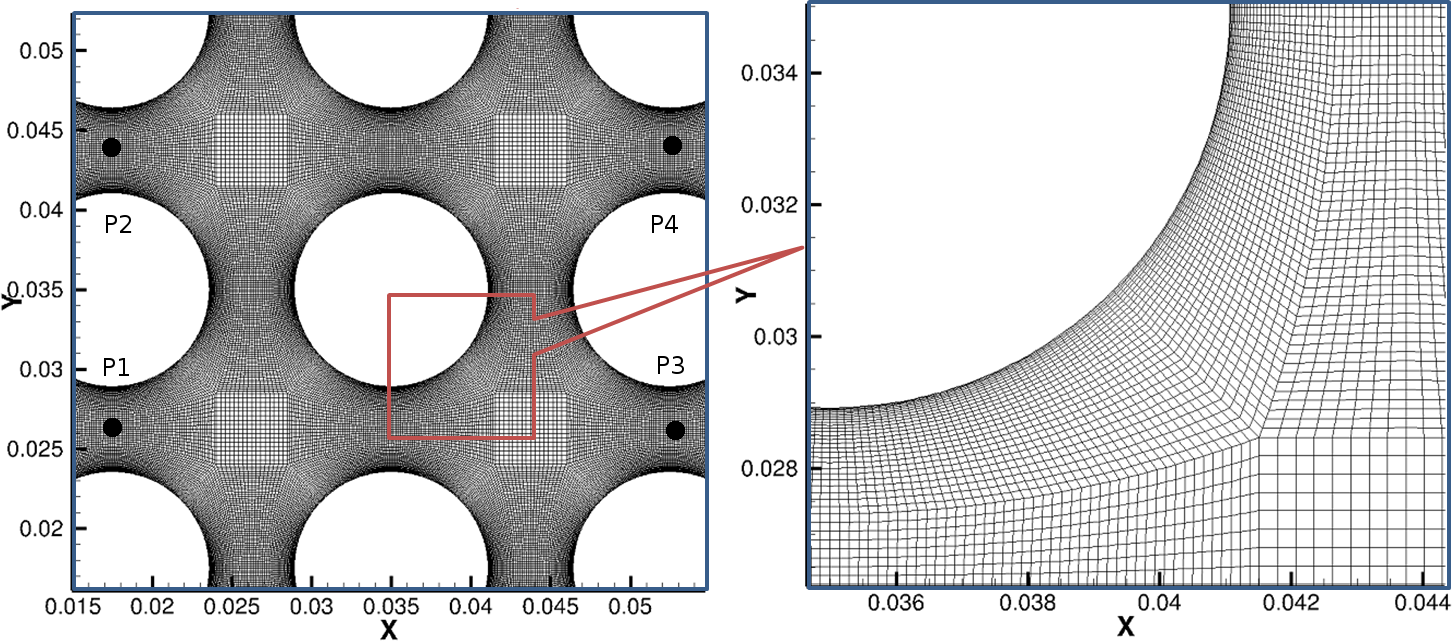 Computational mesh for flow through tube bundles using RANS turbulence models