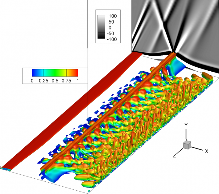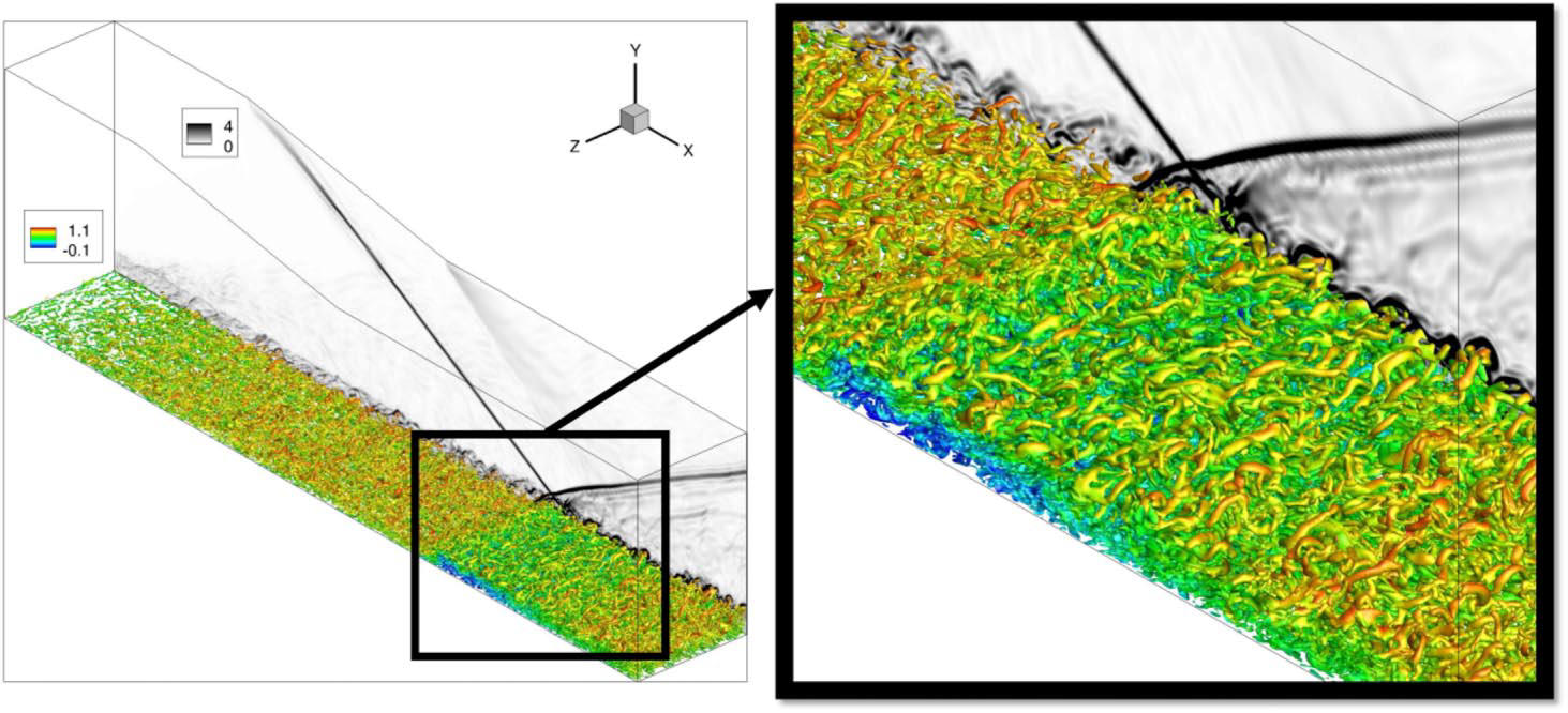 Transitional SBLI at Mach 2, exhibiting Gortler-like flow structures